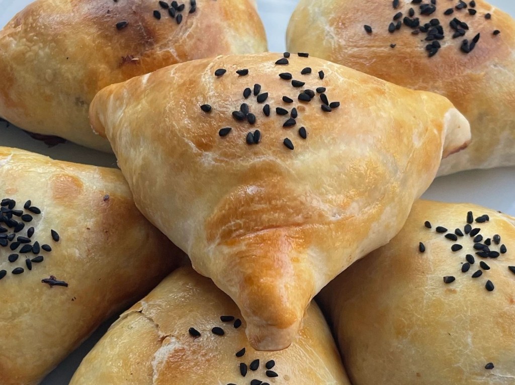 Samsas are small meat filled pastries often sold in markets across Central Asia. Many variations exist, but lamb samsa remains the most popular. Samsas are different to their South Asian counterpart the samosa which is generally fried, in Central Asia it is always baked.