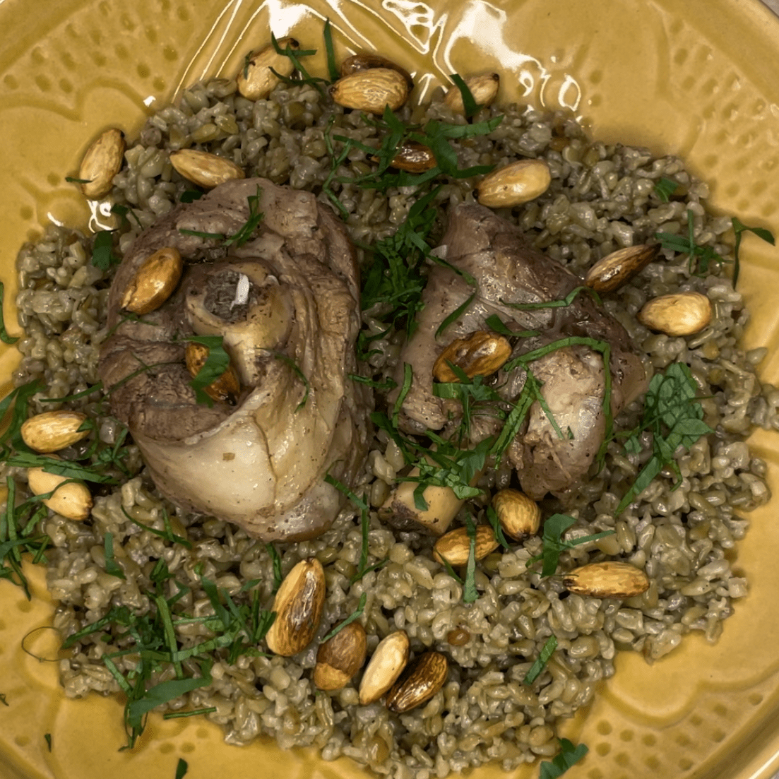 Freekeh is type of toasted and crushed green wheat popular in the Middle East, especially in the Levant region. Lamb is a popular accompaniment to freekeh. The tender spiced lamb and fluffy freekeh are sure to be crowd pleaser.